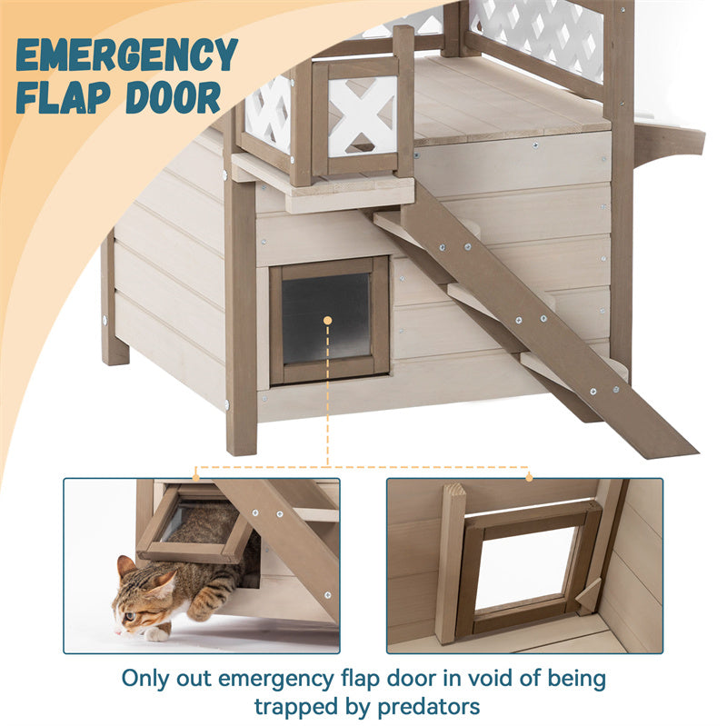 Spacious Design-This 2 story outdoor cat house weatherproof is designed with ample space,30"L x 22"W x 29"H suitable for 2-3 cats.